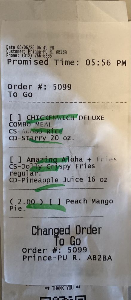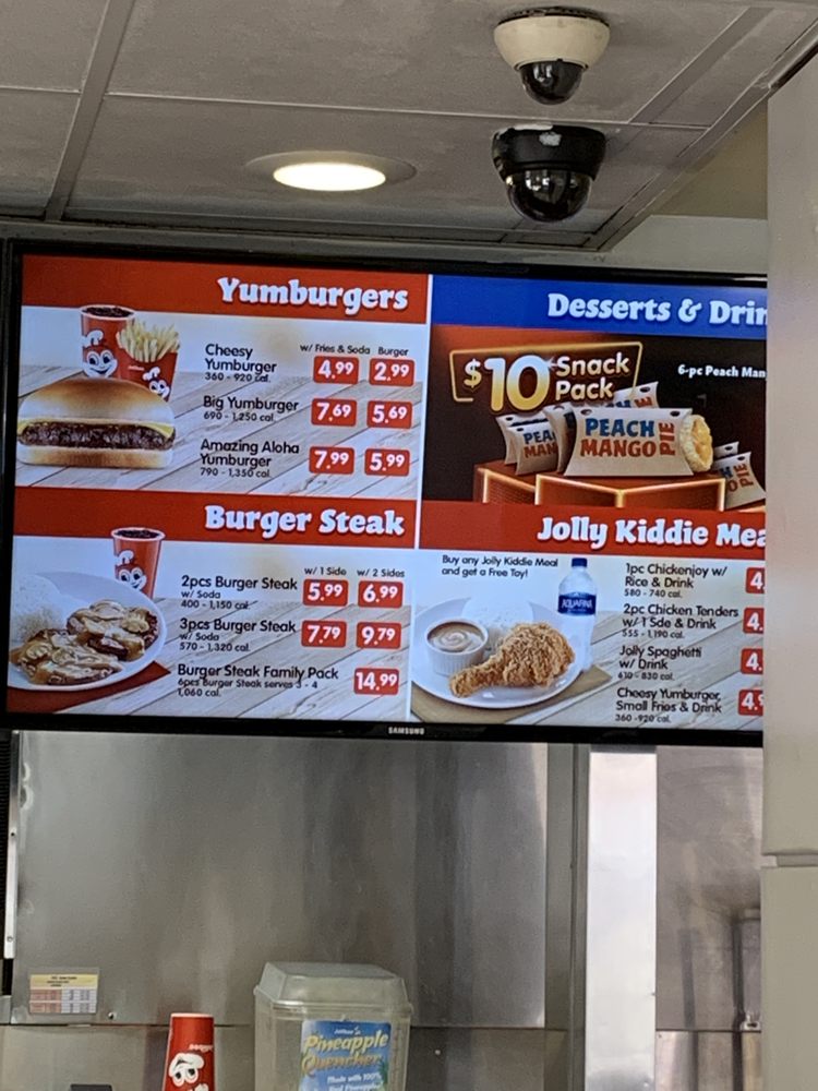 We make our 100% Certified Angus Beef burgers fresh when you order it. Smash-seared on the grill with melted cheese, grilled pineapple, crispy bacon, green leaf lettuce, aloha dressing. Served on a butter-toasted bun with Jolly Crispy Fries and a fountain drink.